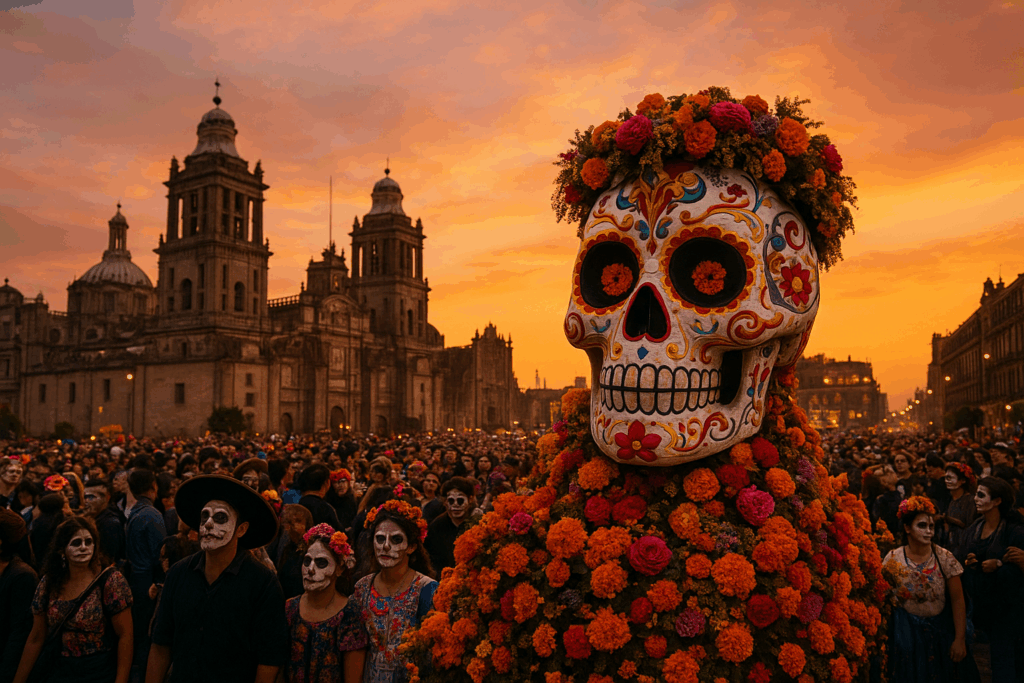 Celebrazione della vita e memoria dei cari. Maschere, fiori e musica trasformano le strade in un tripudio di colore e significato.
